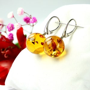 Baltic Cognac Amber Earrings, Dangle Amber Earrings Gift, Solid Amber & Silver Earrings, Genuine Amber Stone Earrings, Baltic Amber Jewelry