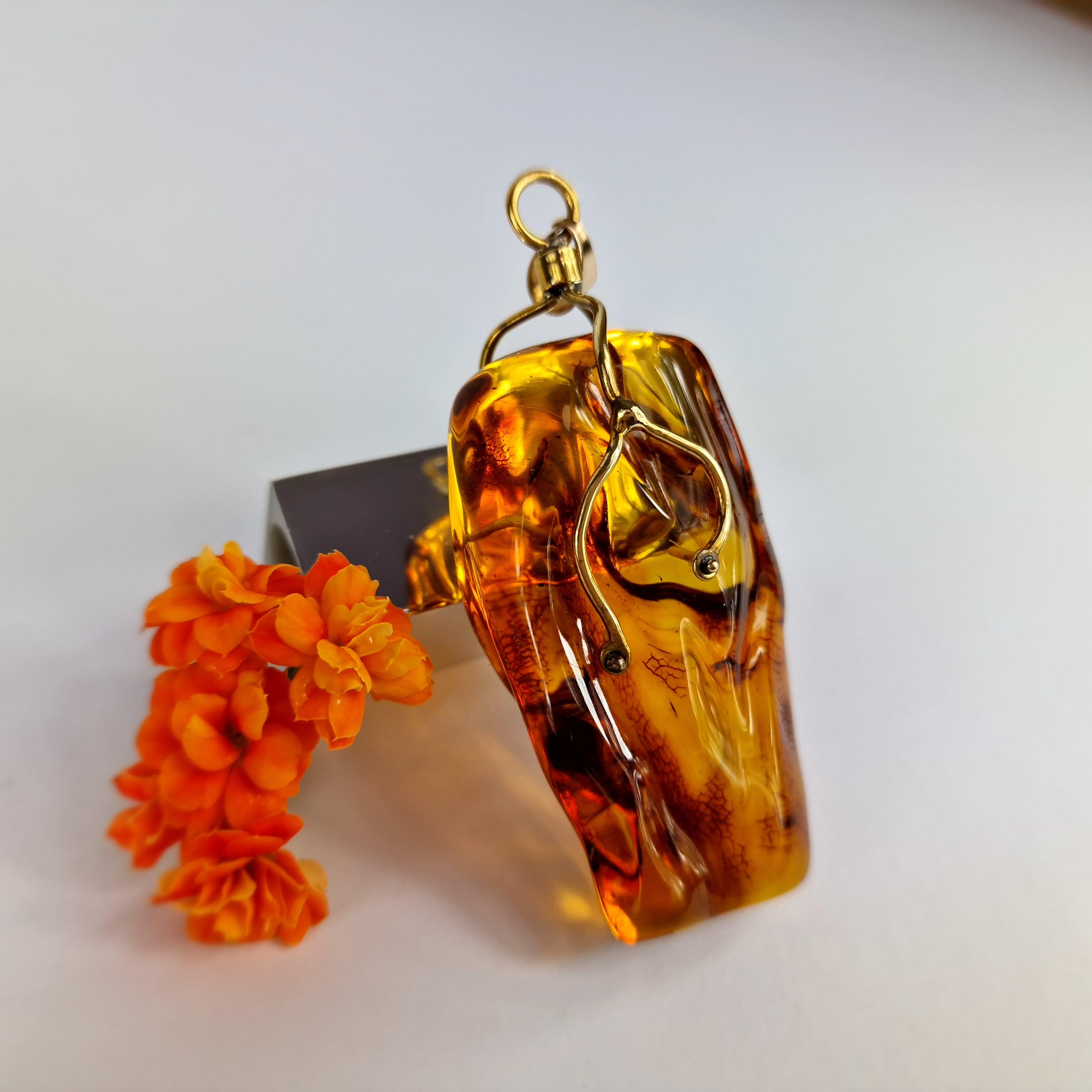 Natural Baltic Amber Pendant, Brass Pendant With Amber, Large Amber Pendant, Handmade Pendant, Cogan Amber Stone, Brass Baltic Amber Jewelry