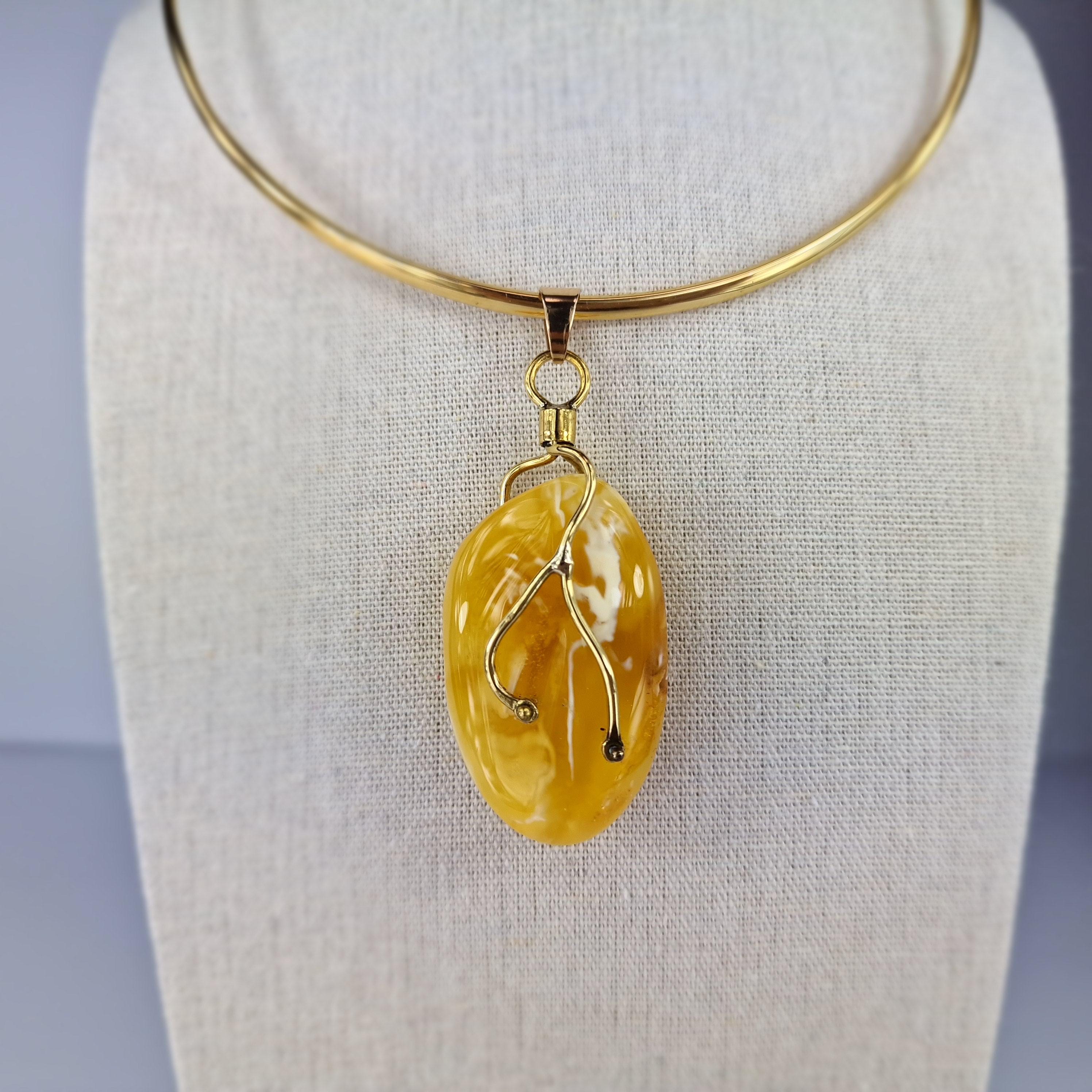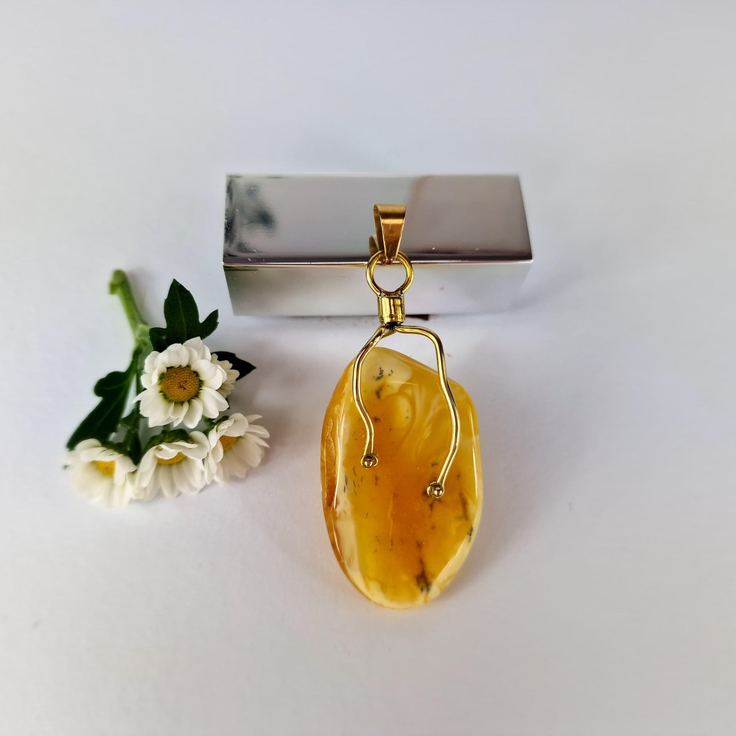 Yellow Amber Pendant, Authentic Baltic Amber Pendant,Natural Stone,Genuine Gemstone,Brass Pendant Gift,Baltic Amber Jewelry,Handmade Product