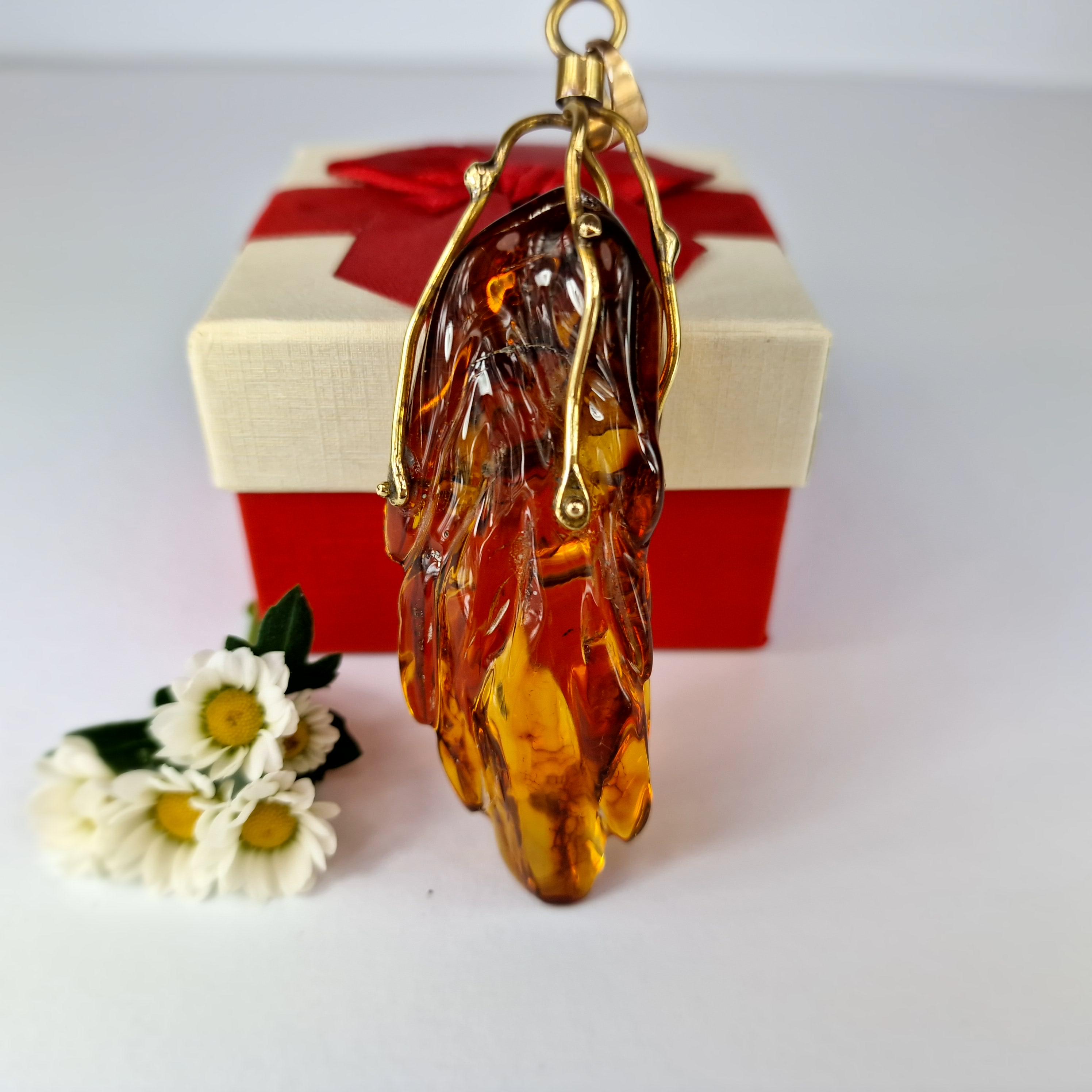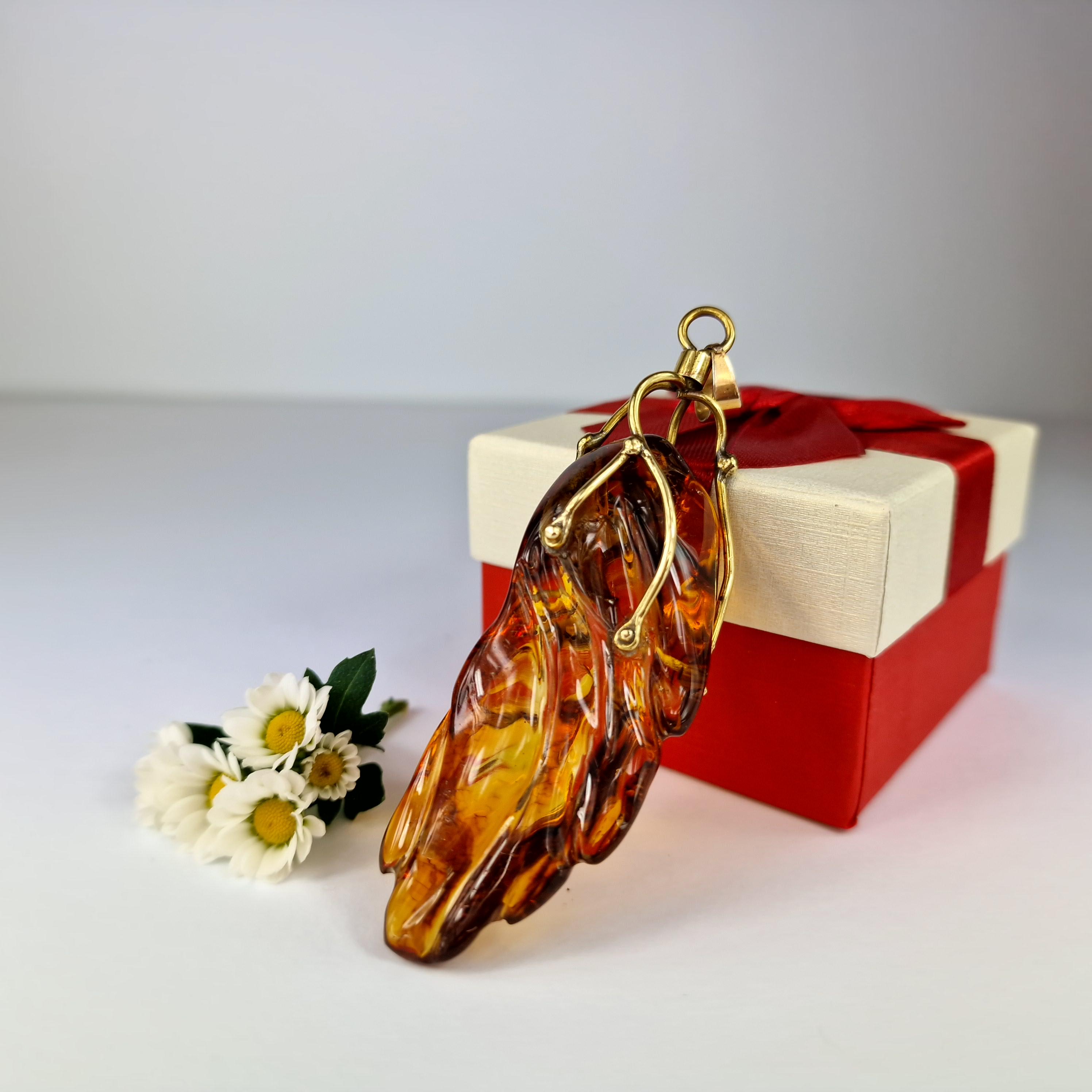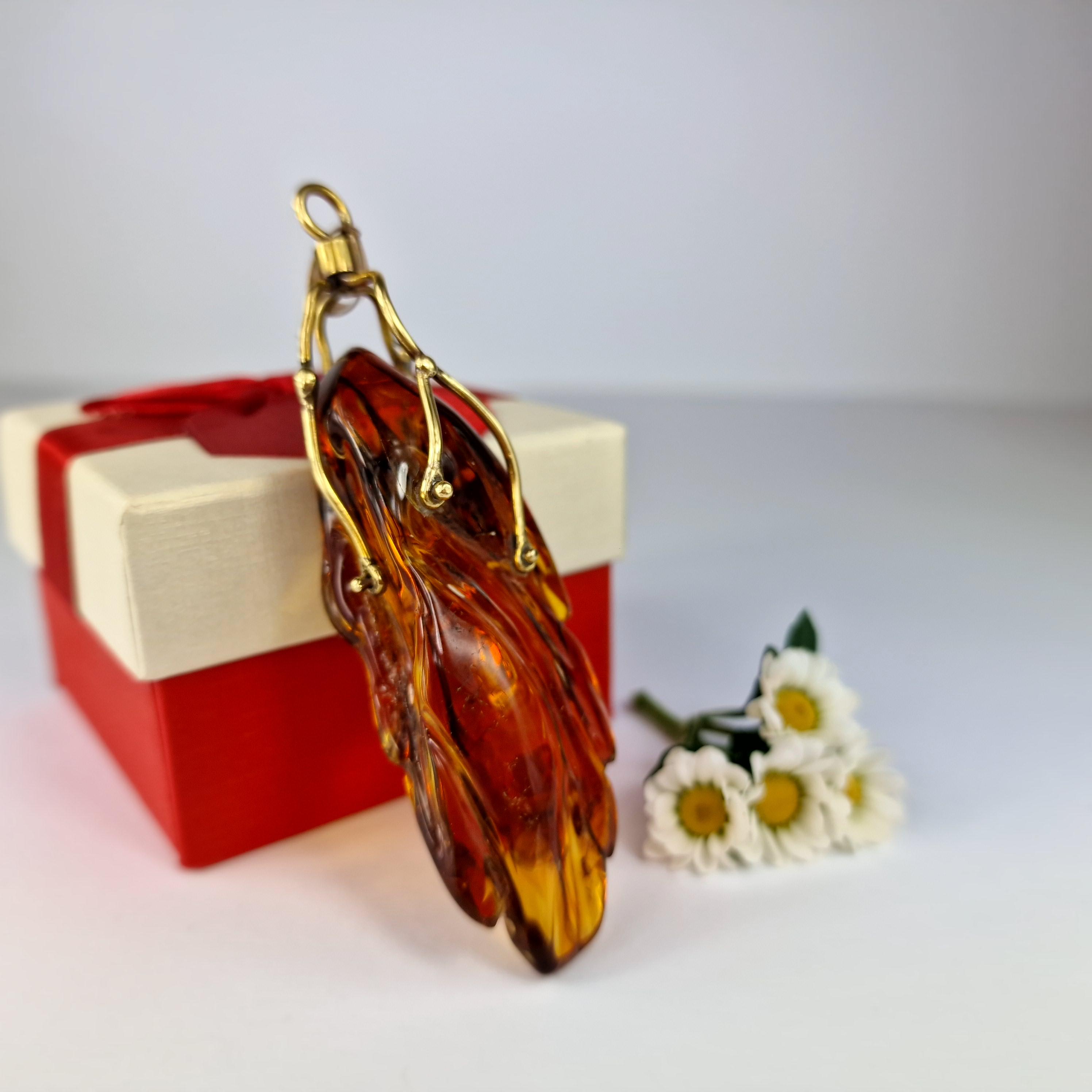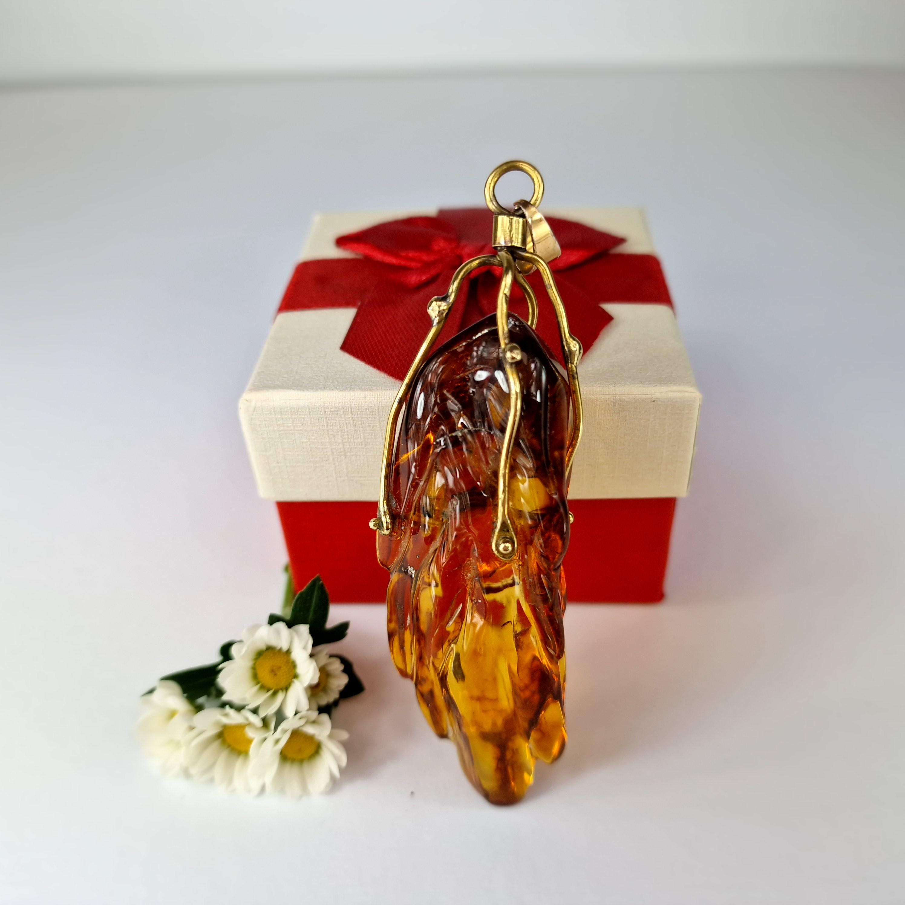 24,16g, Cognac Amber Pendant, Baltic Amber Stone,Engraved Gemstone,Brass Metal Products,Genuine Necklace,Baltic Amber Jewelry,Gift For Women