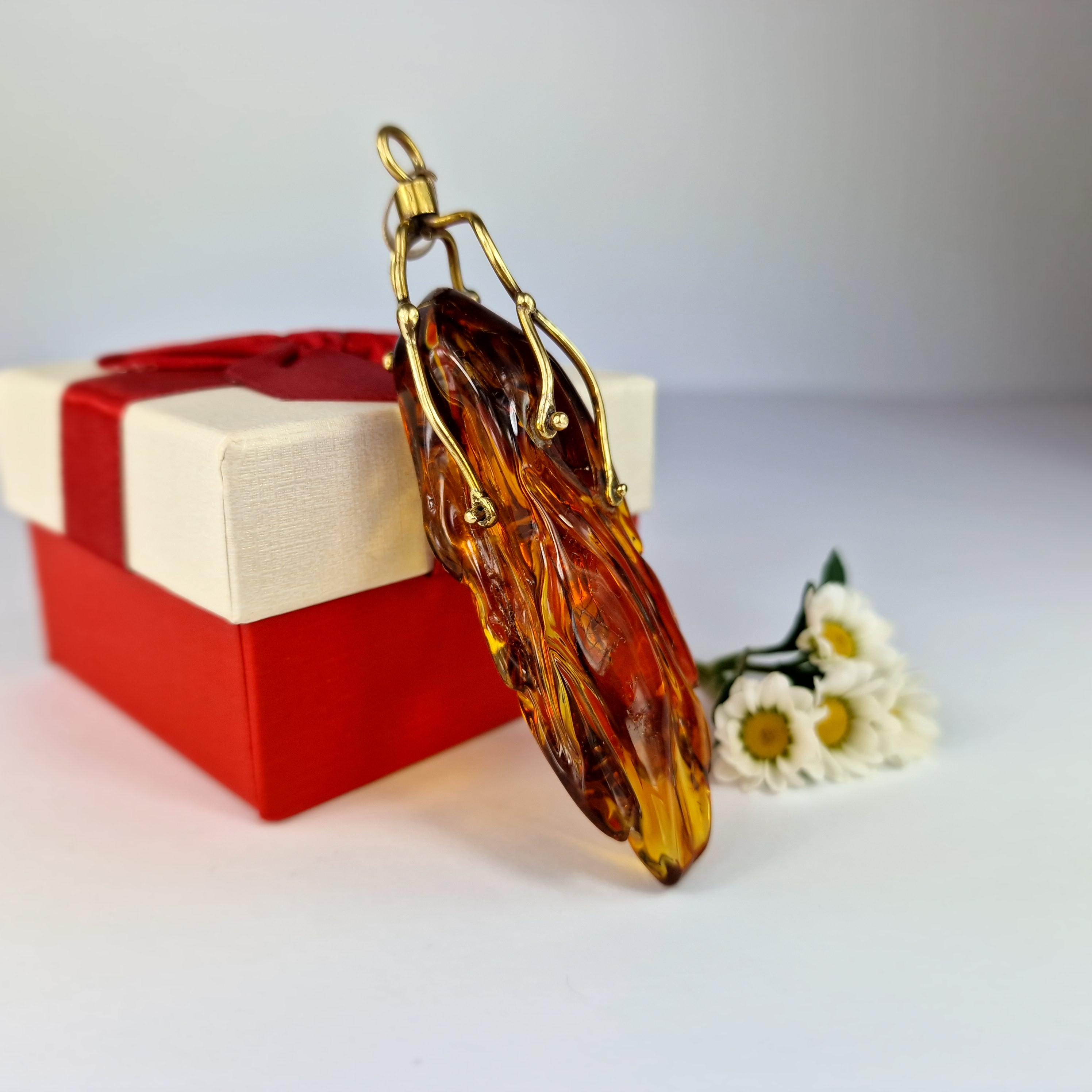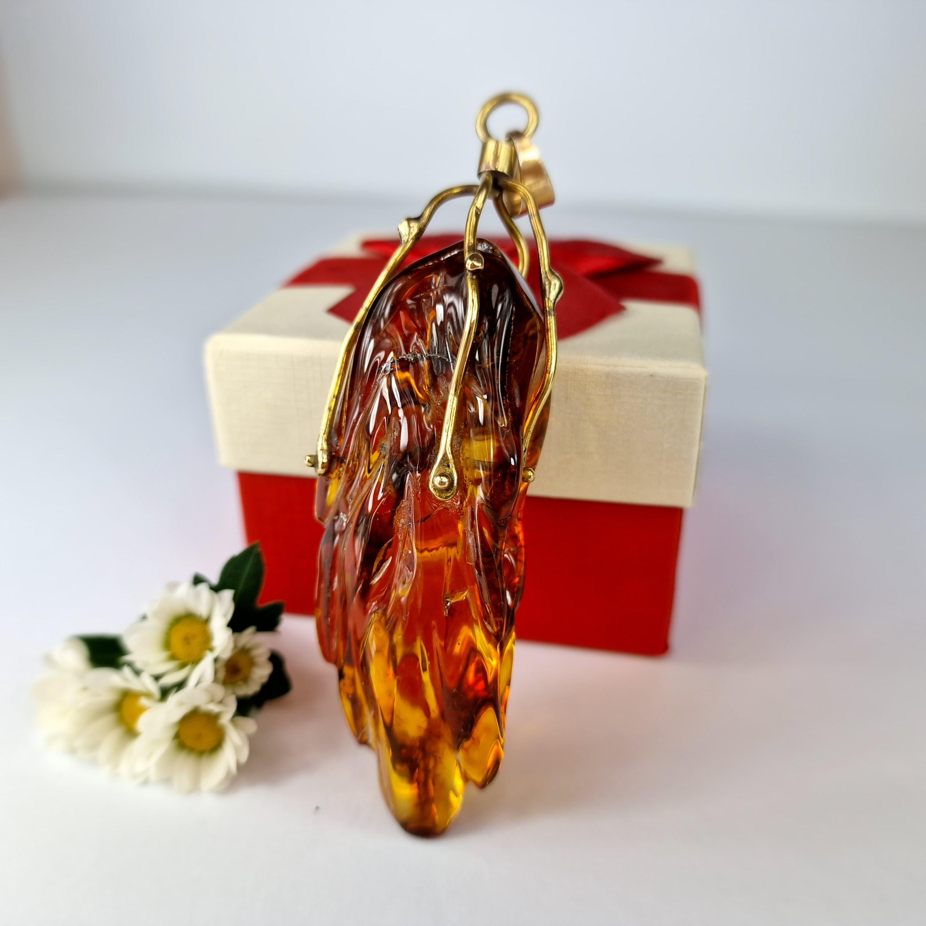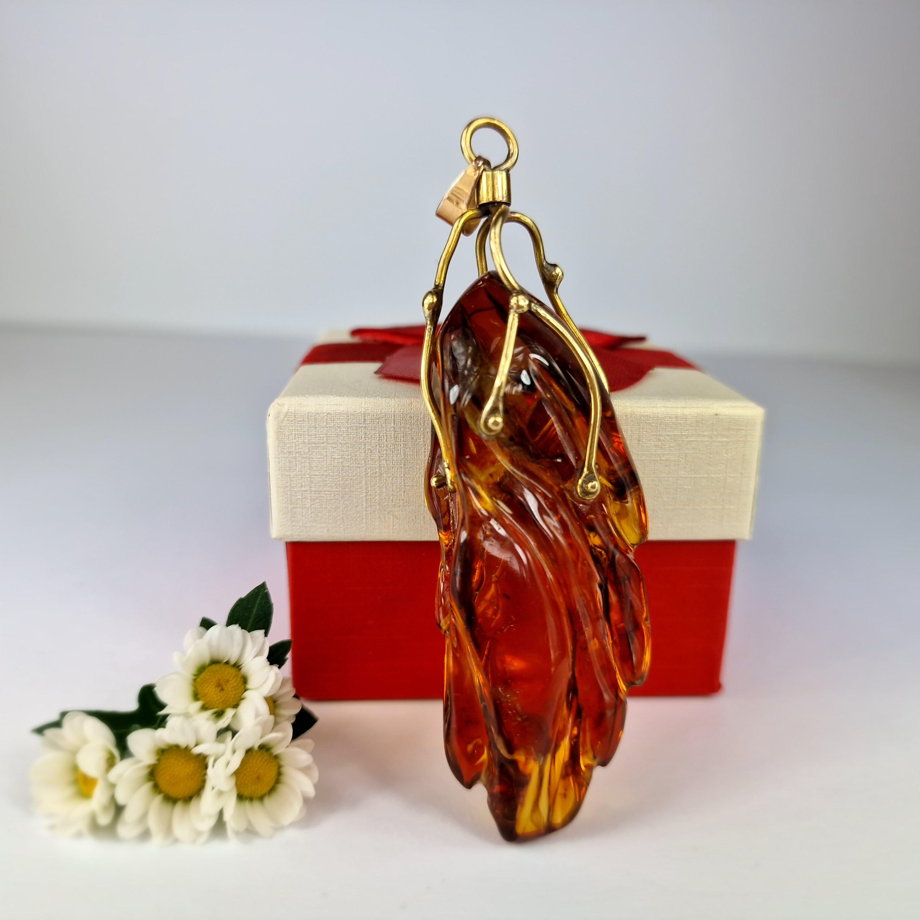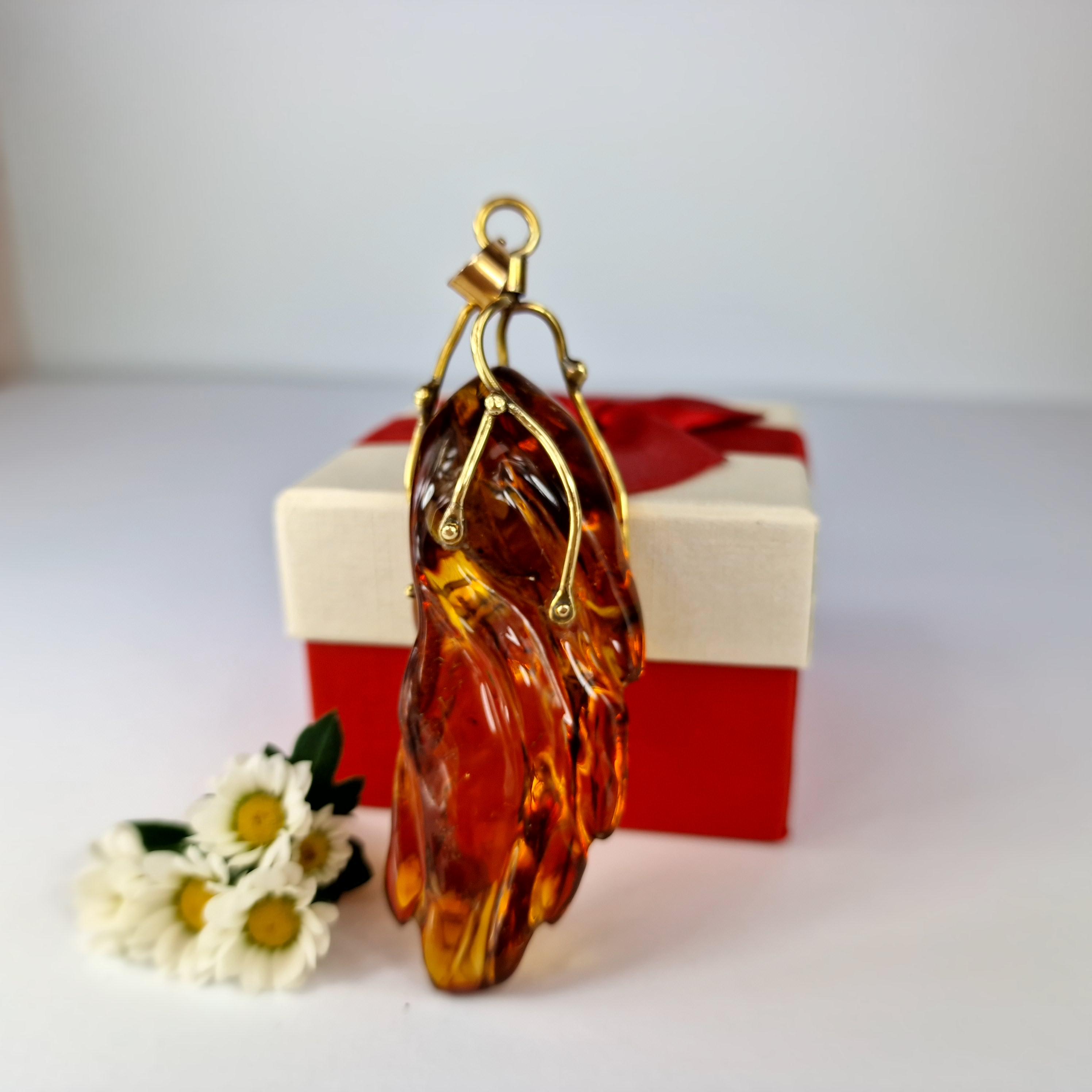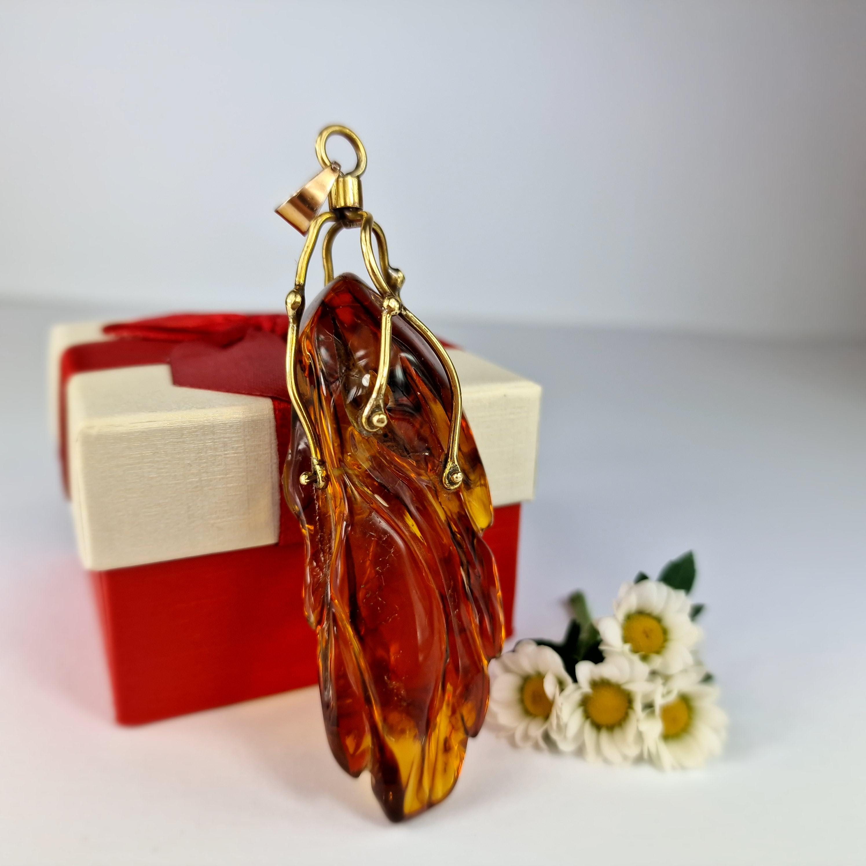 24,16g, Cognac Amber Pendant, Baltic Amber Stone,Engraved Gemstone,Brass Metal Products,Genuine Necklace,Baltic Amber Jewelry,Gift For Women