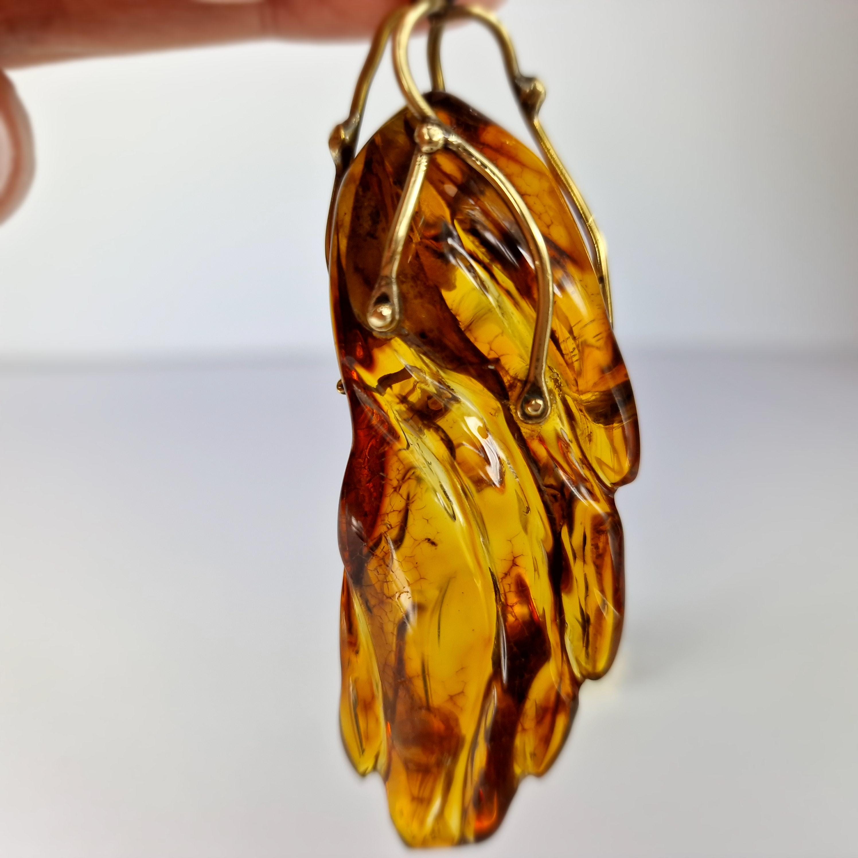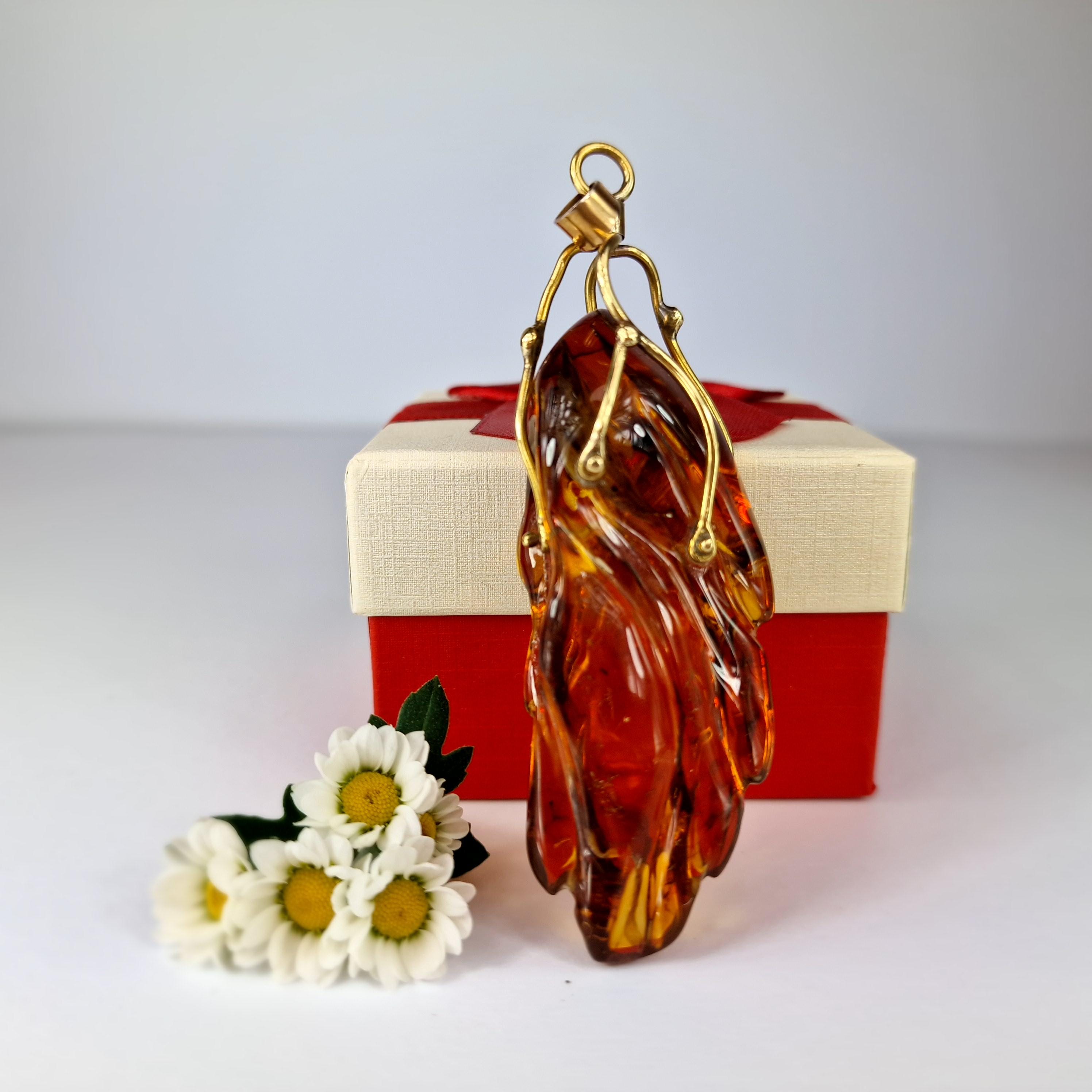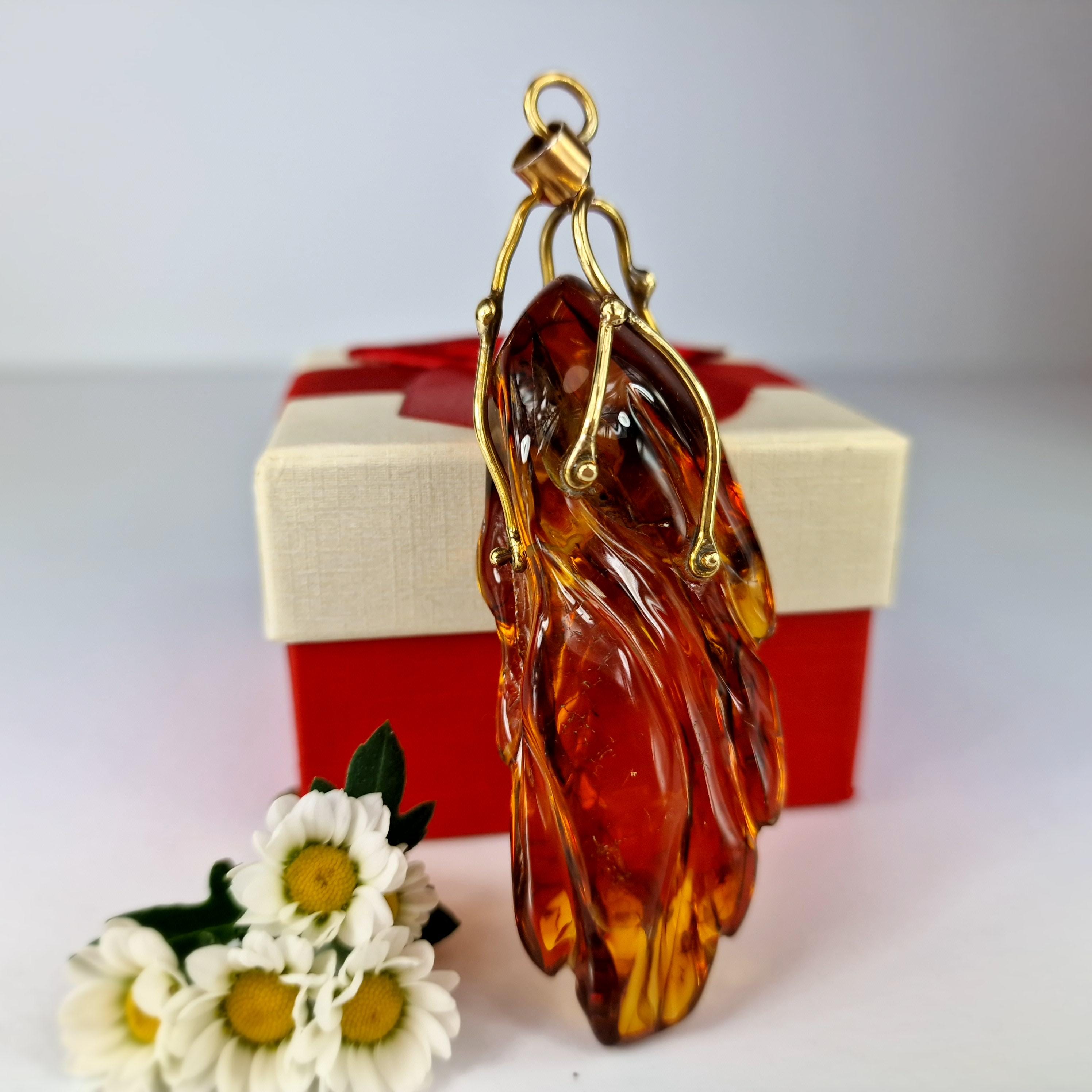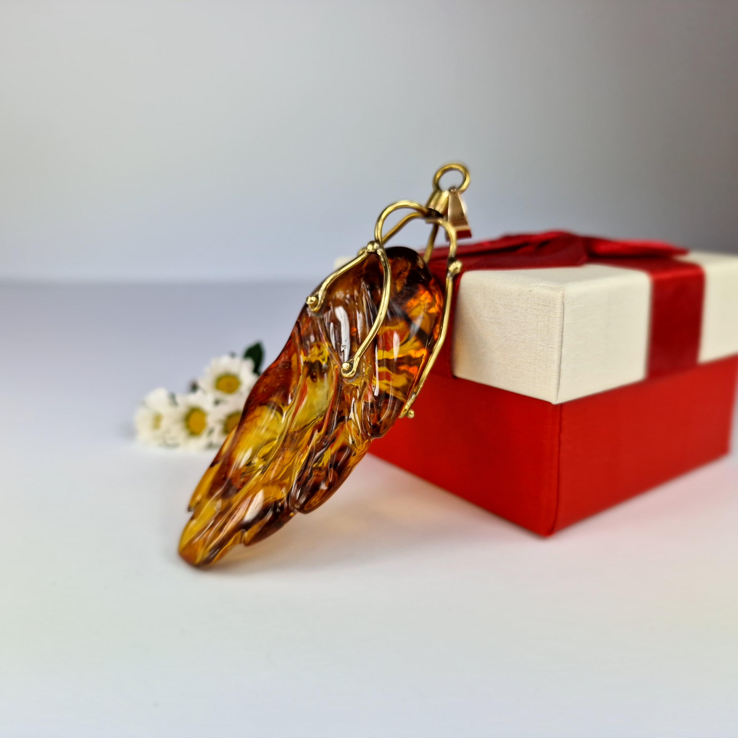 24,16g, Cognac Amber Pendant, Baltic Amber Stone,Engraved Gemstone,Brass Metal Products,Genuine Necklace,Baltic Amber Jewelry,Gift For Women