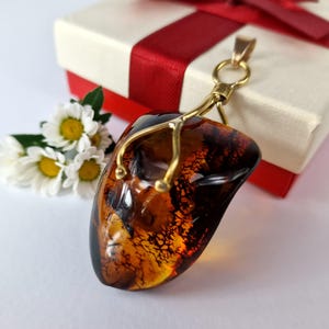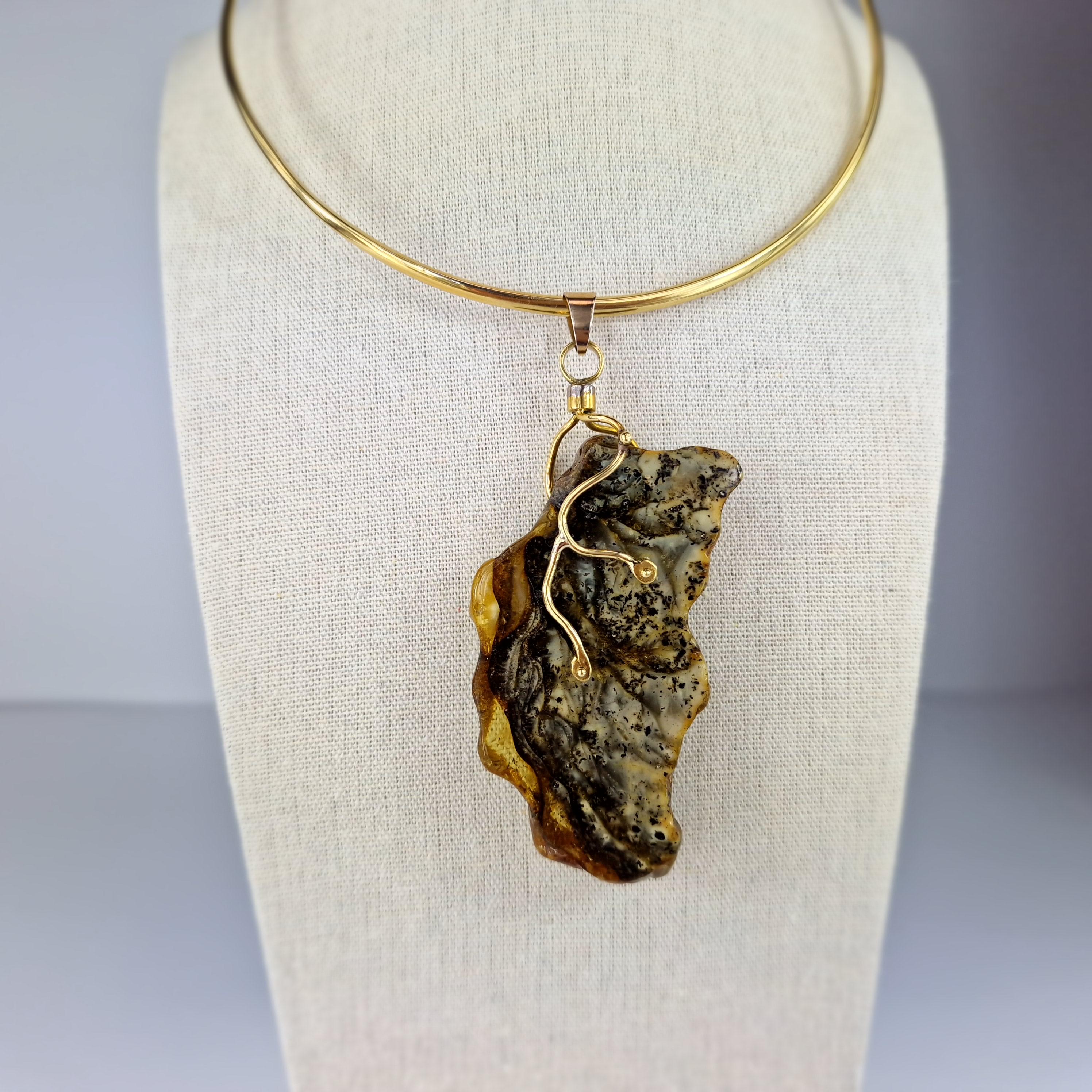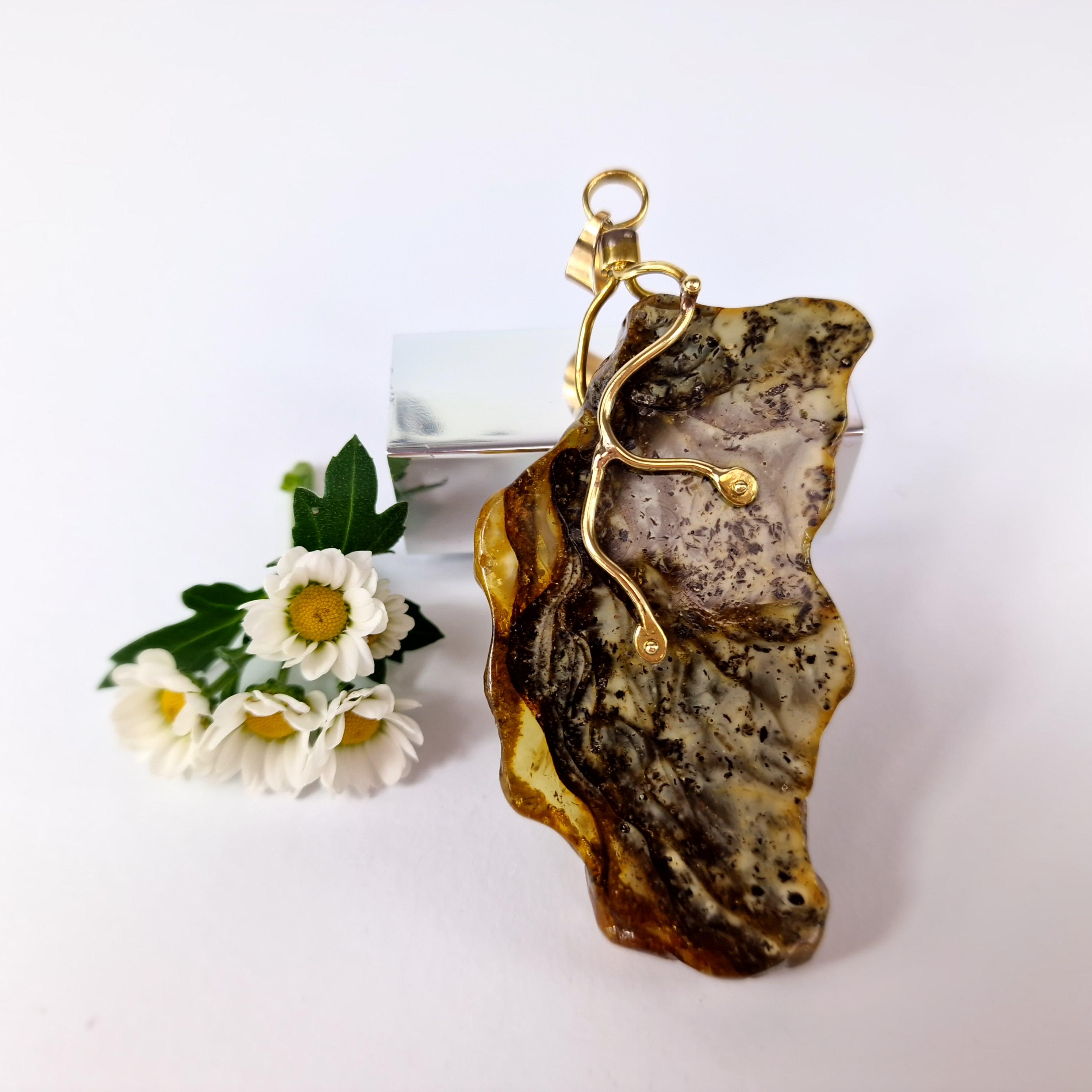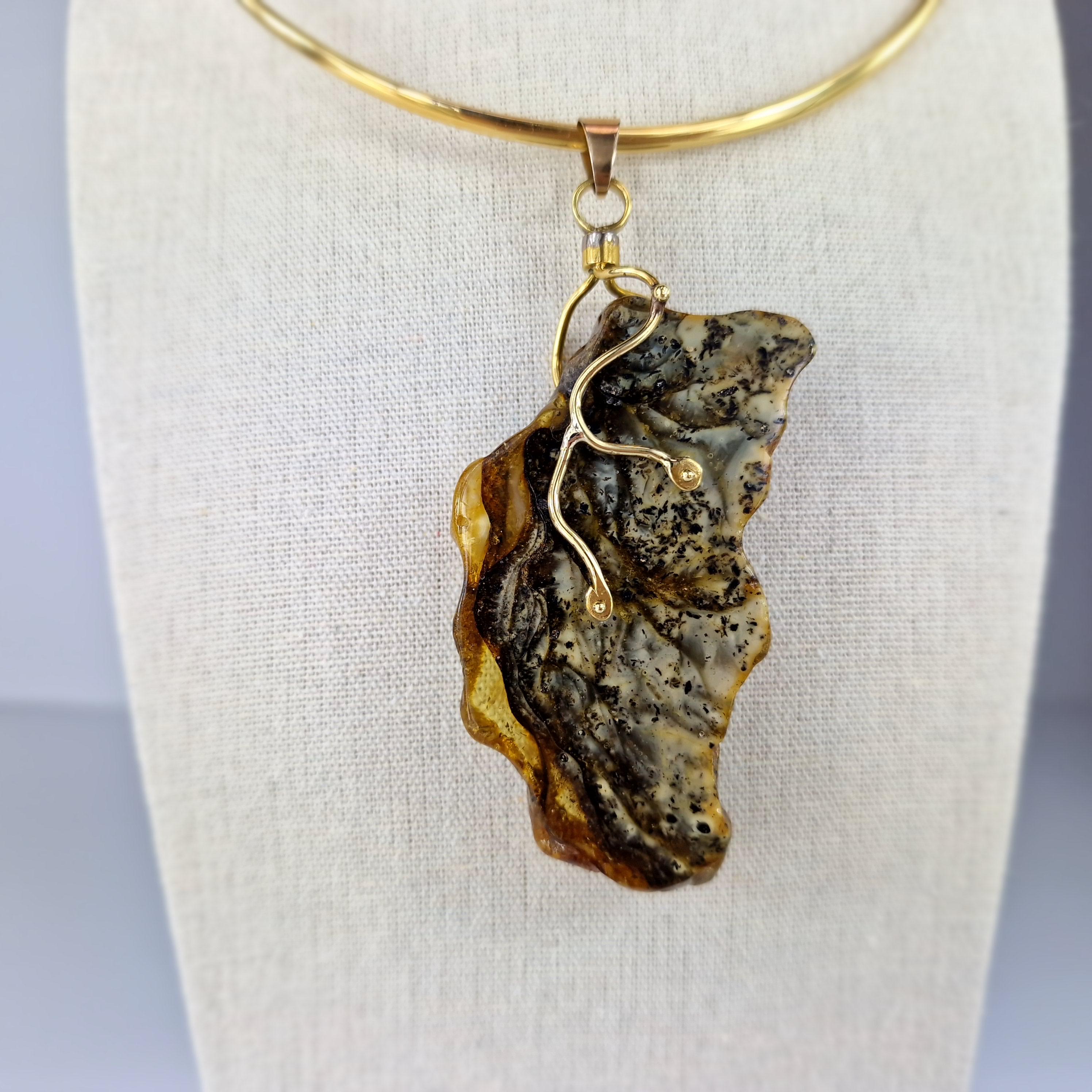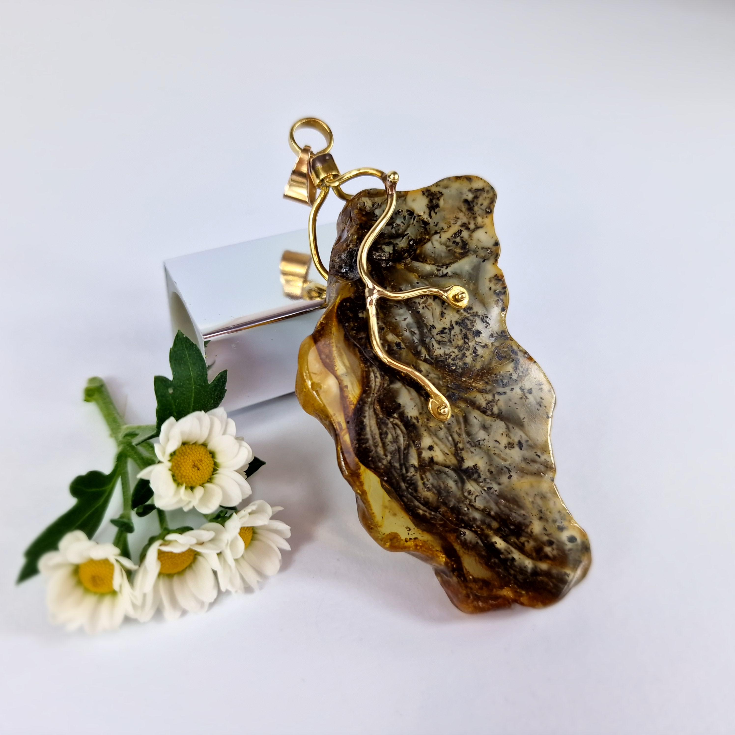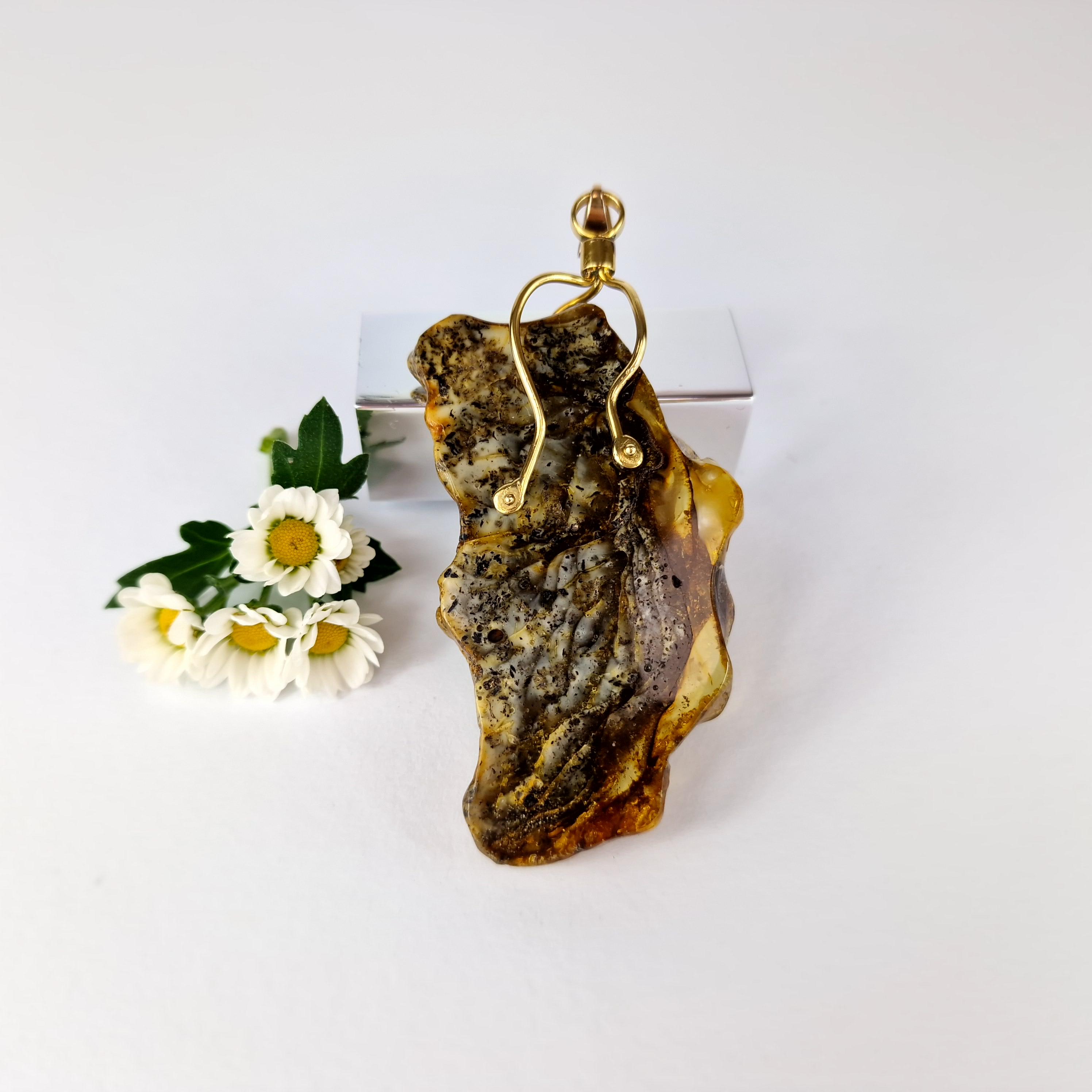 Rare Marble Amber Pendant, Huge Amber Pendant,Natural Amber Stone Bark,Grey Amber Necklace,Handmade Brass Pendant Gift,Baltic Amber Jewelry