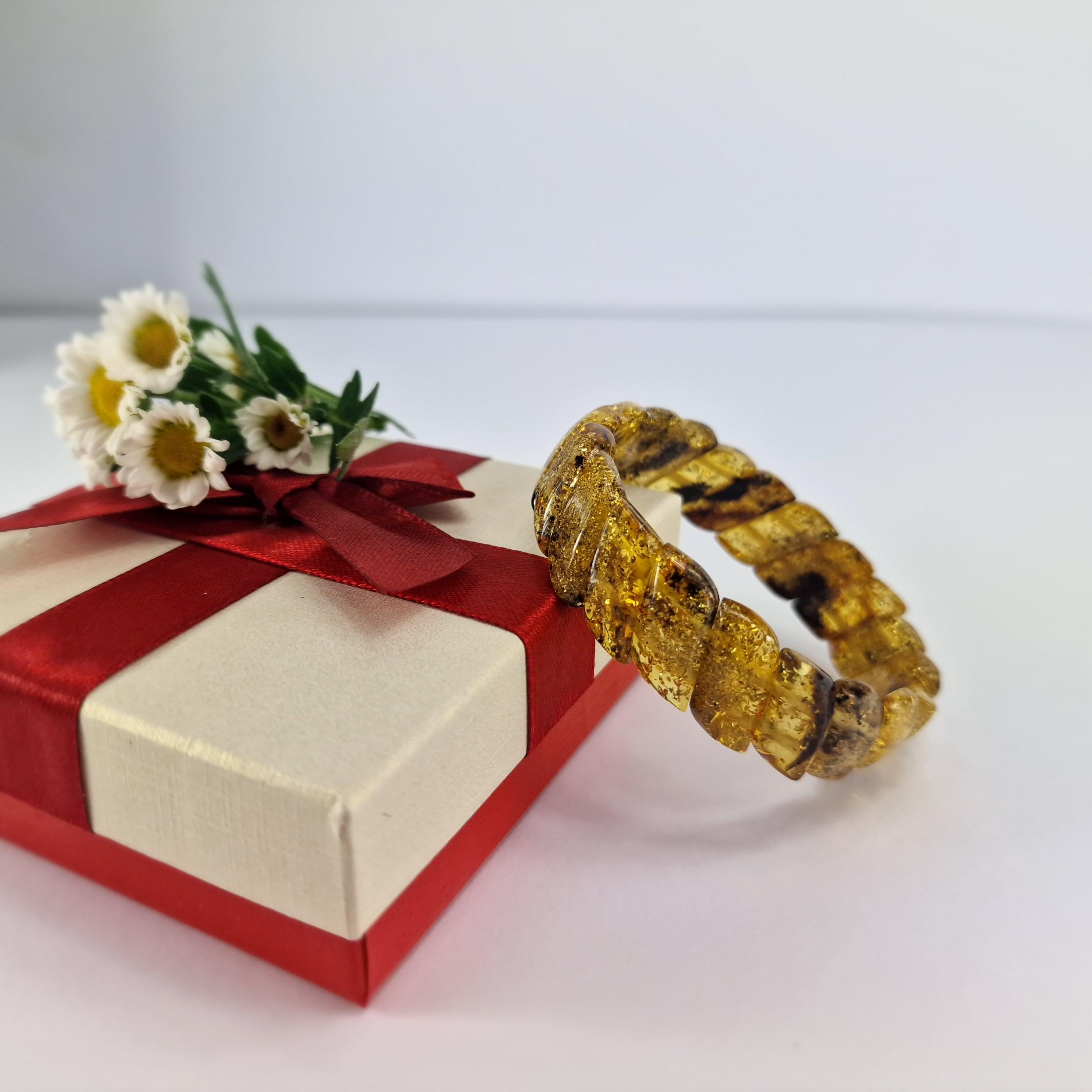 Light Green Amber Bracelet, Glowing Amber Bracelet, Baltic Amber Stone Cuff,Natural Amber Bracelet Without Metal,Green Bracelet Gift For Her