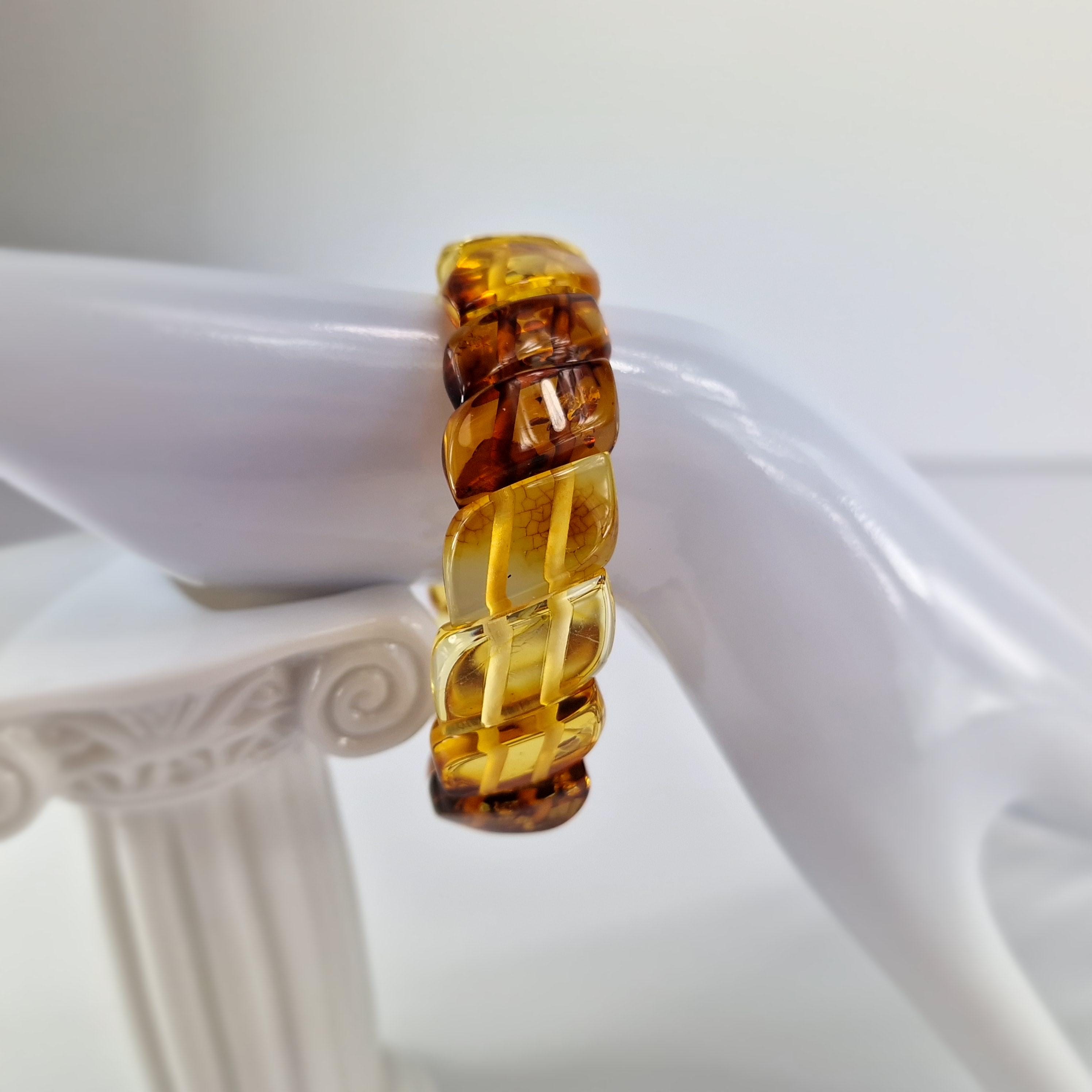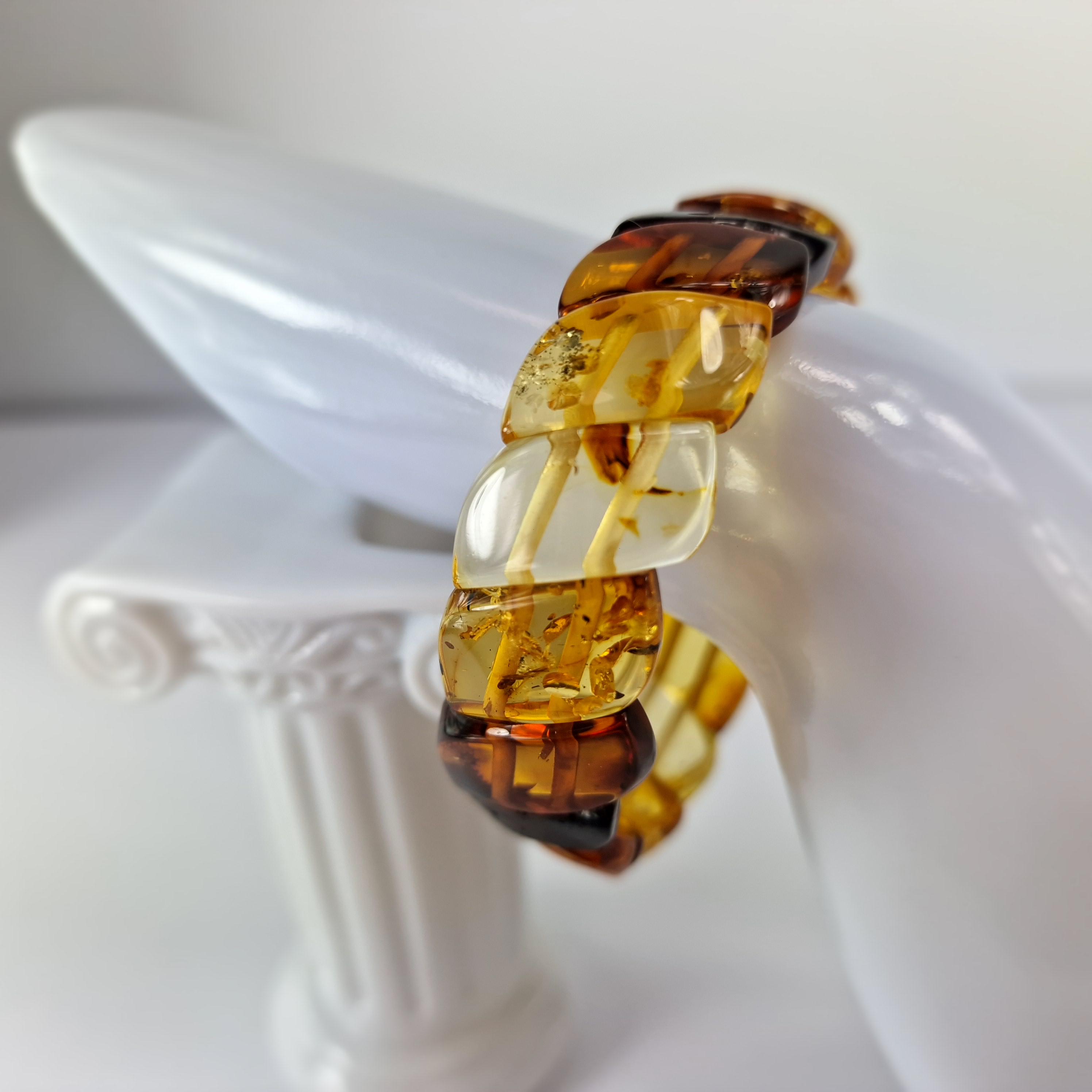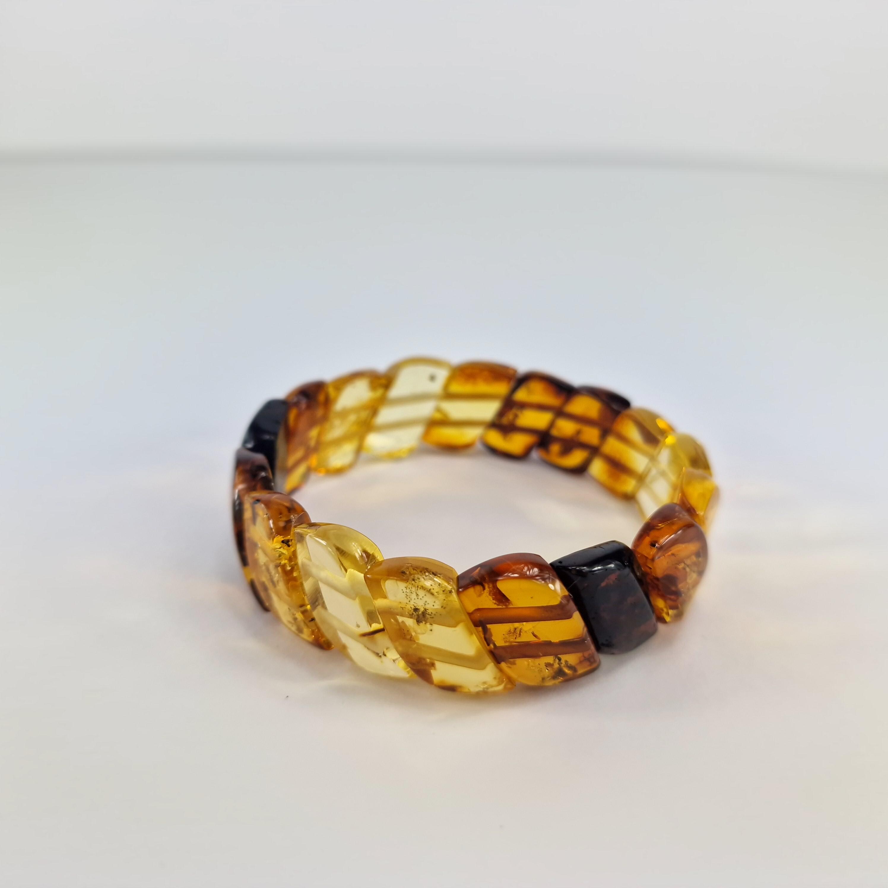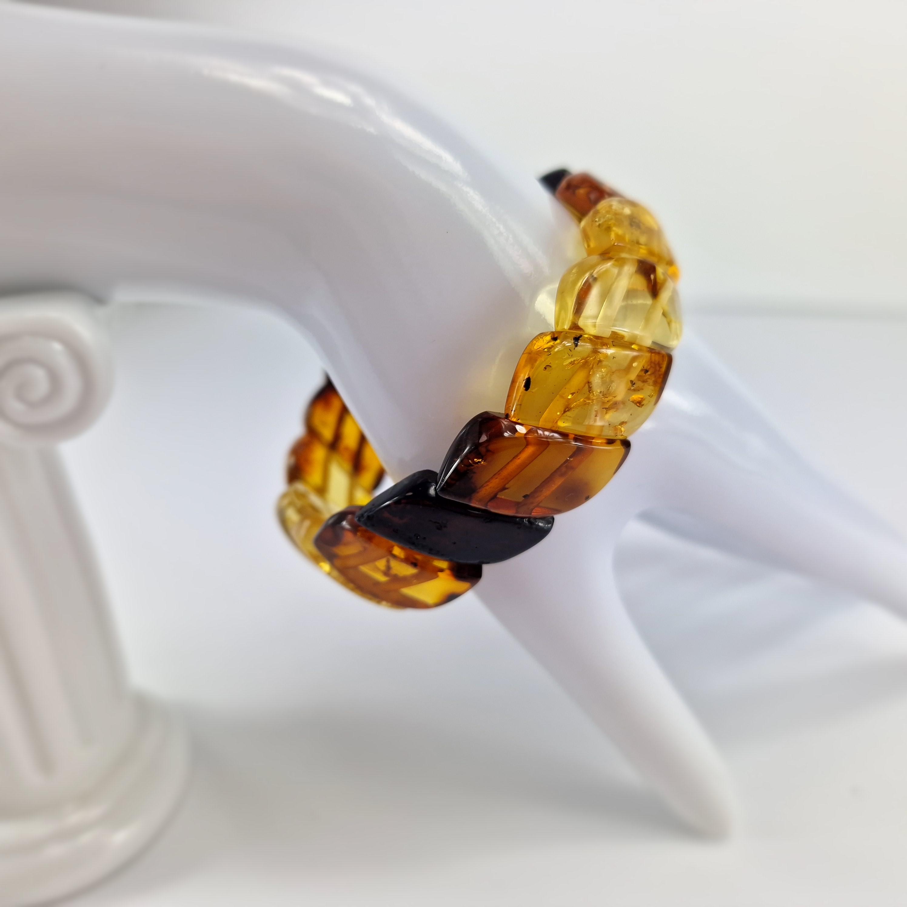 Baltic Amber Bracelet Transitional Colors, Clear Natural Amber Bracelet Jewelry, Genuine Amber Stone Cuff, Multicolored Amber Bracelet Gift