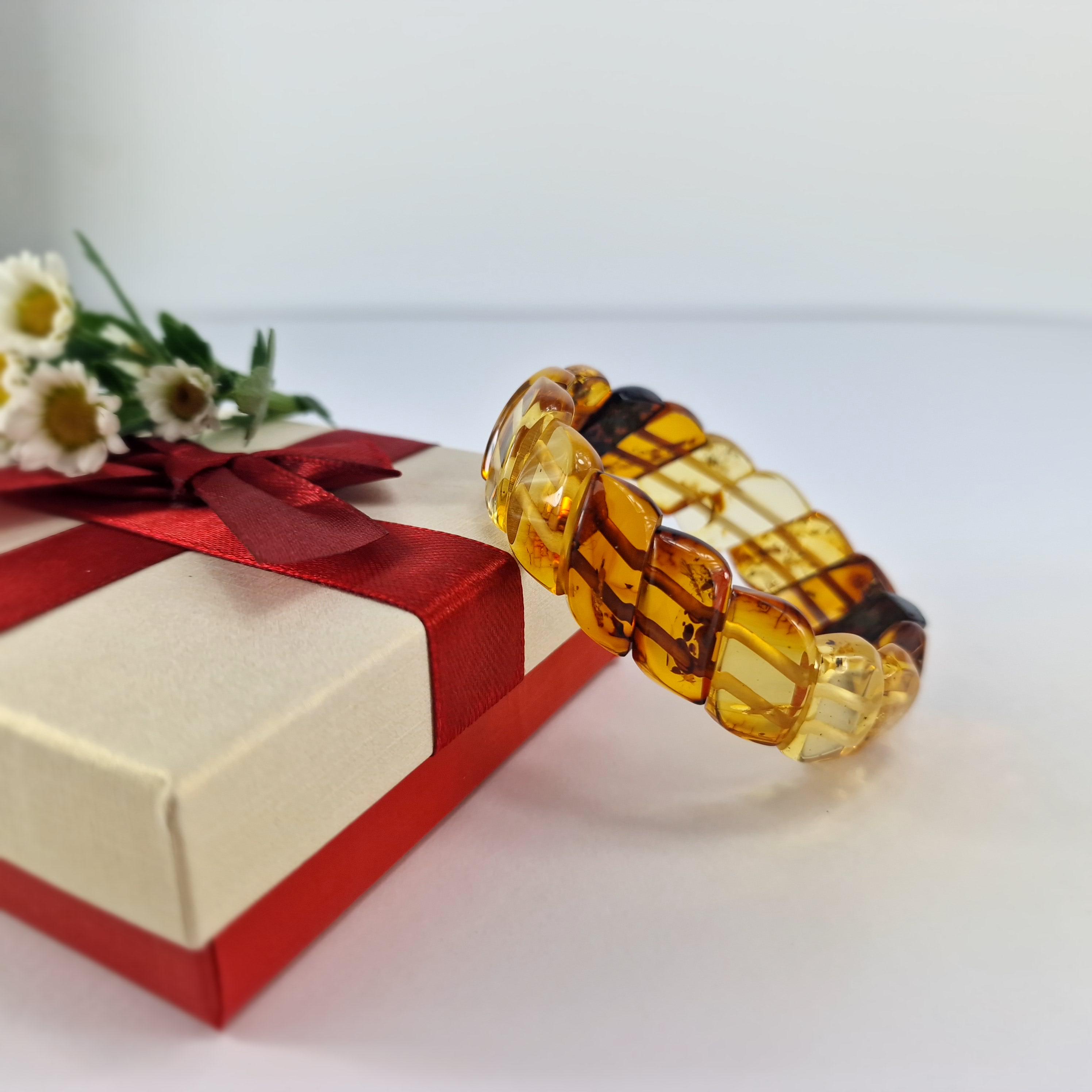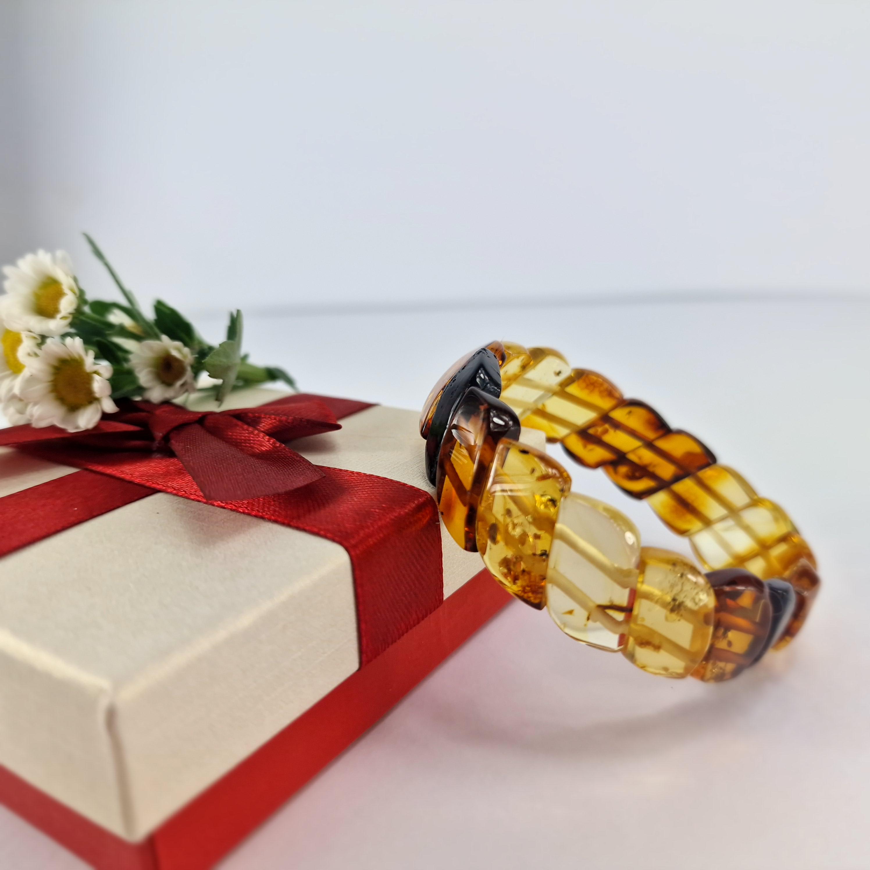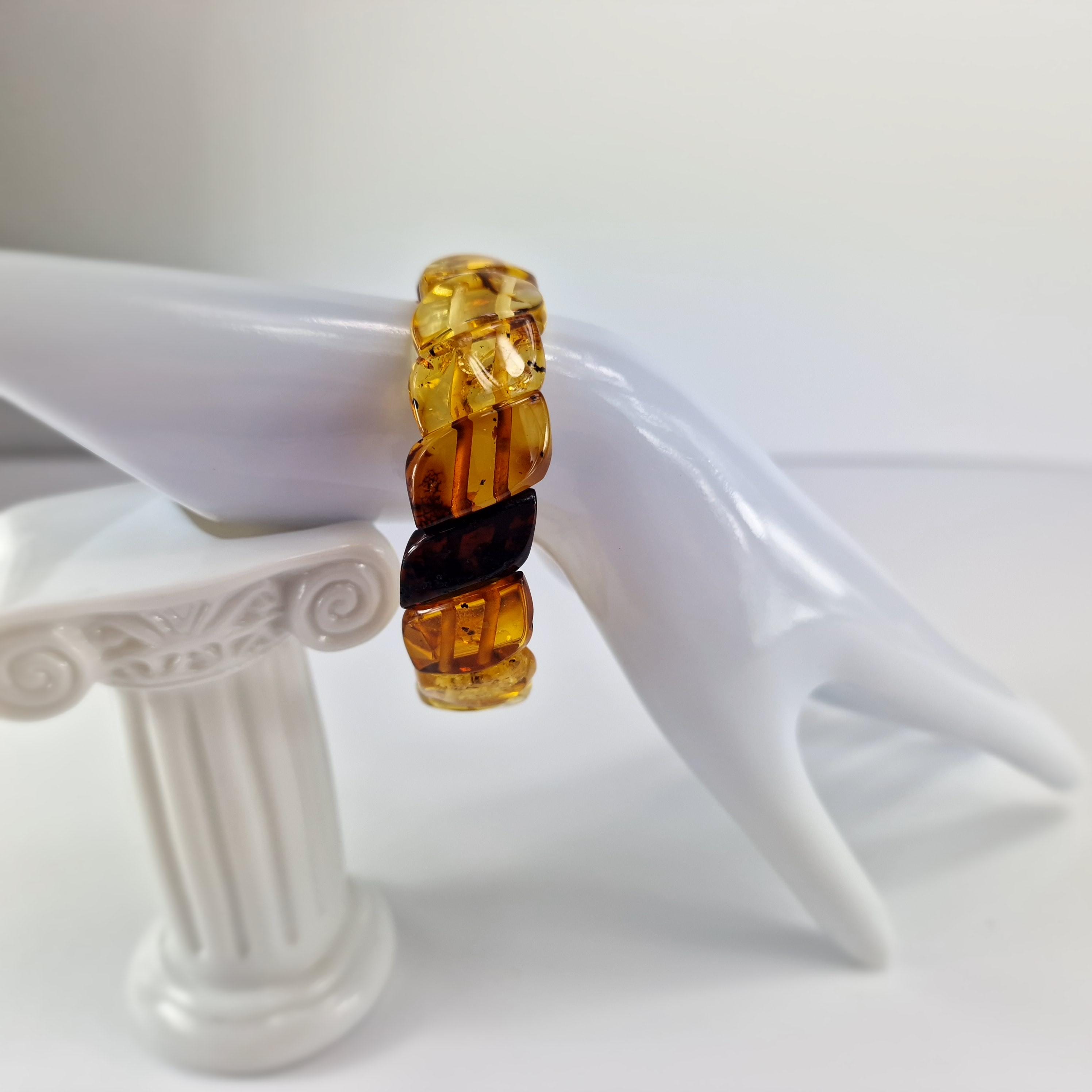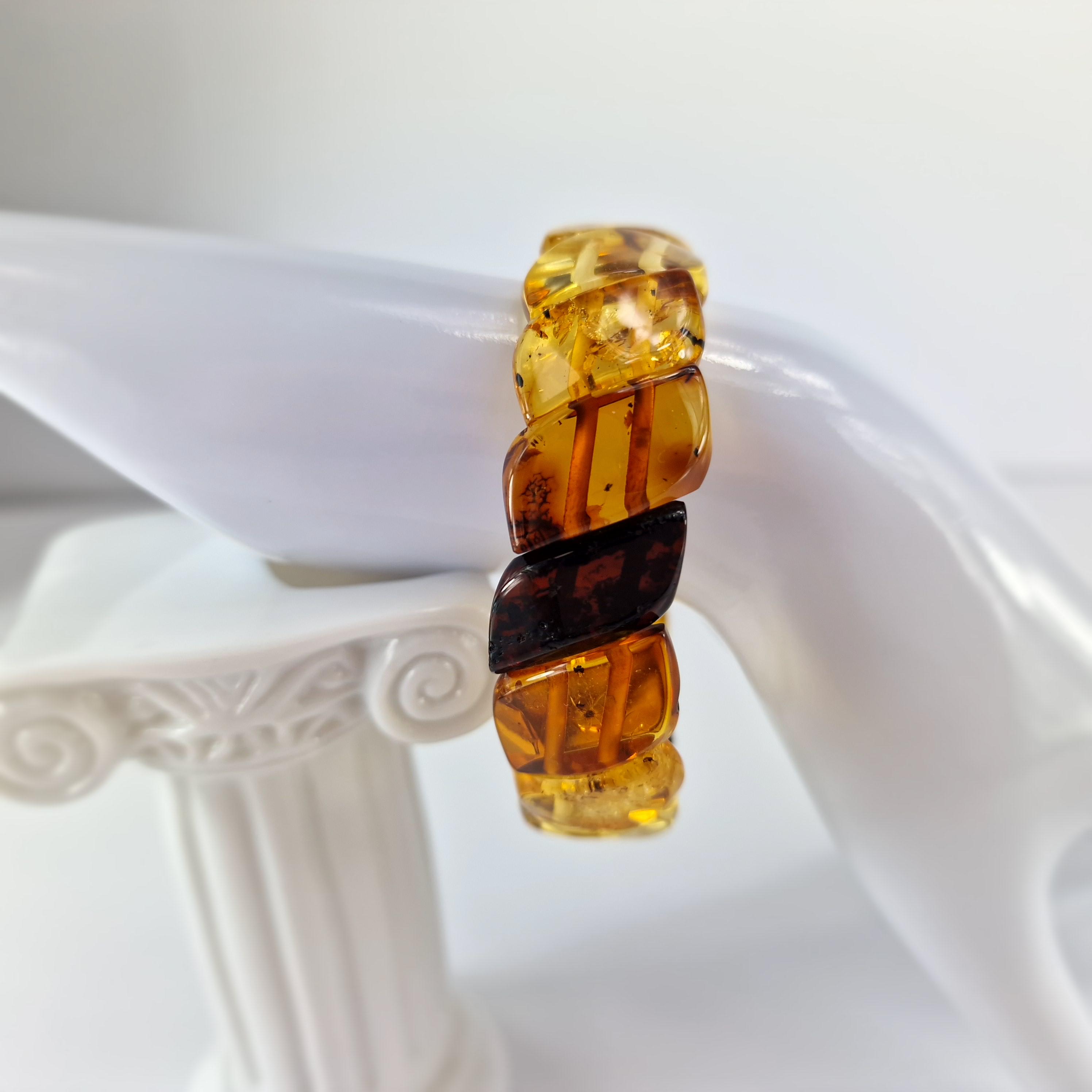 Baltic Amber Bracelet Transitional Colors, Clear Natural Amber Bracelet Jewelry, Genuine Amber Stone Cuff, Multicolored Amber Bracelet Gift